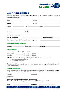 Jeder Interessierte kann dem Väteraufbruch beitreten. Jeder Verein lebt von der aktiven Mitarbeit seiner Mitglieder. Aber auch Personen, die die Ziele des Vereins unterstützen wollen, ohne Zeit für ein Engagement aufbringen zu können, sind herzlich willkommen.